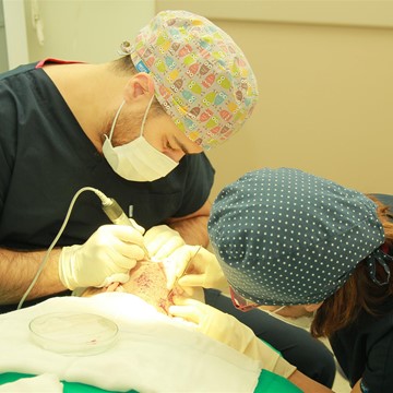 Bei der FUE-Methode werden die Haare gekürzt, die Stelle lokal betäubt und mit Punch-Enden, deren Durchmesser zwischen 0,5-0,8 mm variiert, Haarfollikel entnommen und in die an der haarlosen oder mit schütterem Haar bedeckten Stelle geöffneten Mikrokanäle eingepflanzt.